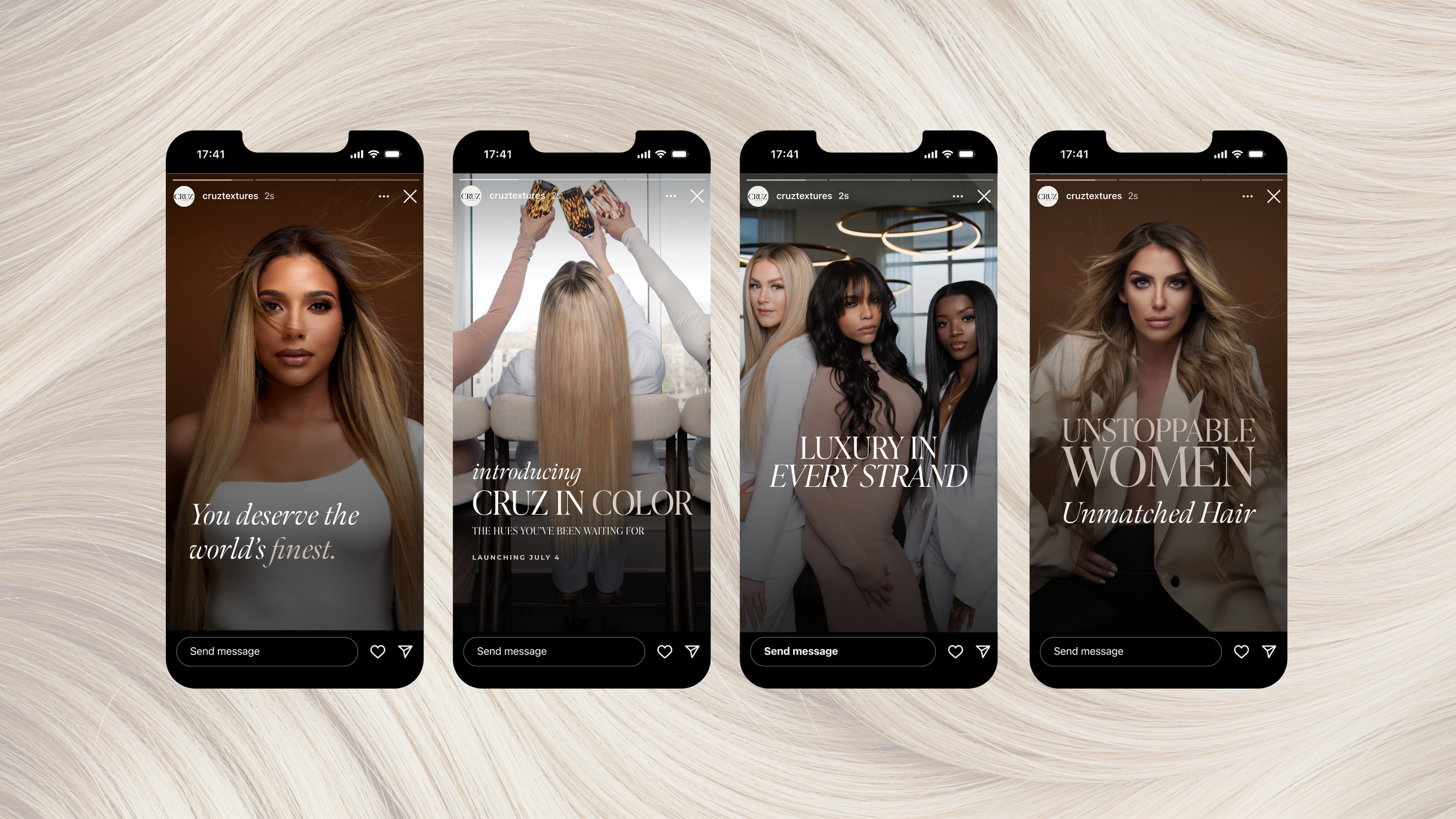 We structured campaigns around Cruz Textures' highest-revenue product categories, prioritizing weft bundles as the primary conversion anchor given their proven revenue contribution, with clip-ins and tape-ins supported as secondary conversion pathways. Campaign messaging and targeting were built to reach the brand's core audience: style-conscious, brand-loyal consumers with the income and intent to invest in premium quality hair extensions.
