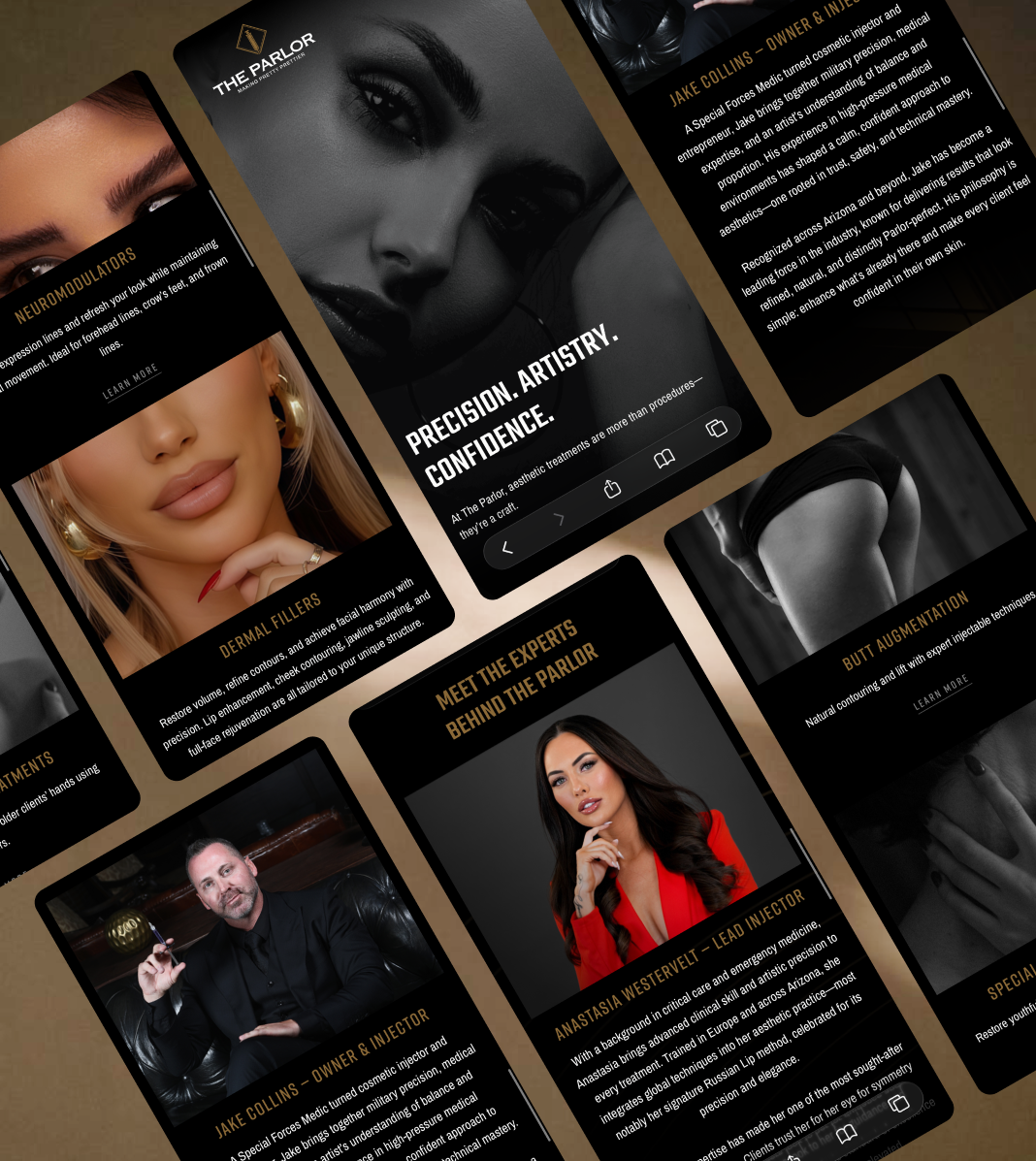 We translated that brand into a conversion-aware website experience designed to educate, build trust, and drive bookings. The site architecture showcased signature services including neuromodulators, dermal fillers, and facial restructuring, while surfacing the founder's expertise, the brand's differentiated aesthetic, treatment education, client testimonials, and clear pathways to book consultations and appointments.